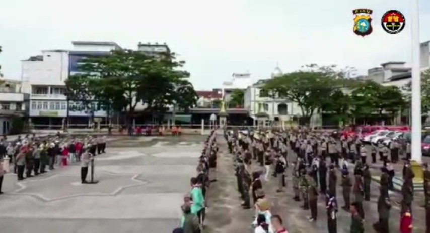 Tim Gugus Tugas Covid-19 Inhil Gelar Apel Pasukan Sebelum Lakukan Penyemprotan Desinfektan Secara Massal di Fasilitas Umum di lingkungan Tembilahan, Sabtu (28/3/2020).