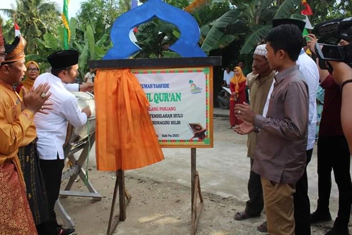 Abdul Wahid Anggota DPR RI didampingi Iwan Taruna dan Aditya Ramadhan Putra Anggota DPRD Inhil Resmikan Rumah Tahfizd Desa Sialang Panjang