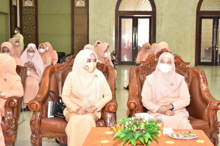 BANGKINANG KOTA, (INDOVIZKA) - Ketua Dharma Wanita Persatuan (DWP) Kabupaten Kuantan Singingi Ny Susilawati Dedy Sambudi menghadiri langsung kegiatan pengukuhan dan perpisahan dengan pengurus DWP UP Kabupaten Kampar, bertempat di Aula Pertemuan Bupati Kampar, Komplek Perkantoran Bupati Kampar, Jalan Panglima Khotib, Bangkinang Kota, Kelurahan Langini, Kecamatan Bangkinang Kota, Kabupaten Kampar, Jum'at (25/02/2022) pagi jelang siang.