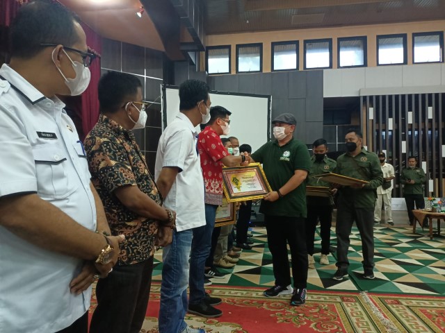 TEMBILAHAN (INDOVIZKA) - Puncak rangkaian kegiatan sempena peringatan Hari Pers Nasional (HPN) tahun 2022 di Kabupaten Indragiri Hilir (Inhil) berlangsung meriah dan semarak, Rabu 2 Maret 2022 sore.