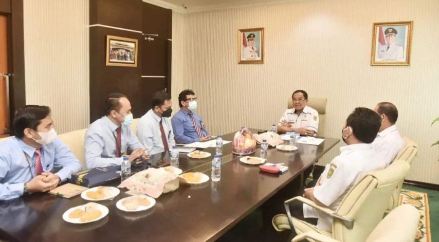 Bupati Inhil didampingi Asisten II dan III Setda Inhil serta Kepala Bapenda Inhil menerima kunjungan KPP di Ruang Rapat Lantai 4 Kantor Bupati Inhil Jalan Akasia, Tembilahan.