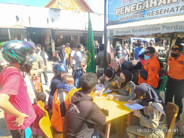 Operasi kali ini berlangsung di Pasar Mayang Kelapa (Pasar Pagi) Jl. Baharuddin Yusuf Tembilahan. Warga yang kedapatan melanggar Prokes langsung diarahkan untuk mengikuti sidang di tempat yang dilakukan oleh Hakim dari Kejari.