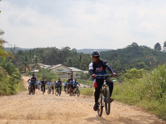 Komunitas Sepeda Lapas Tembilahan Kantor Wilayah (Kanwil) Kementerian Hukum dan HAM Riau yaitu "PasGO Lapaste" menjajal trek perbukitan yang sangat menantang, Sabtu (26/3).
