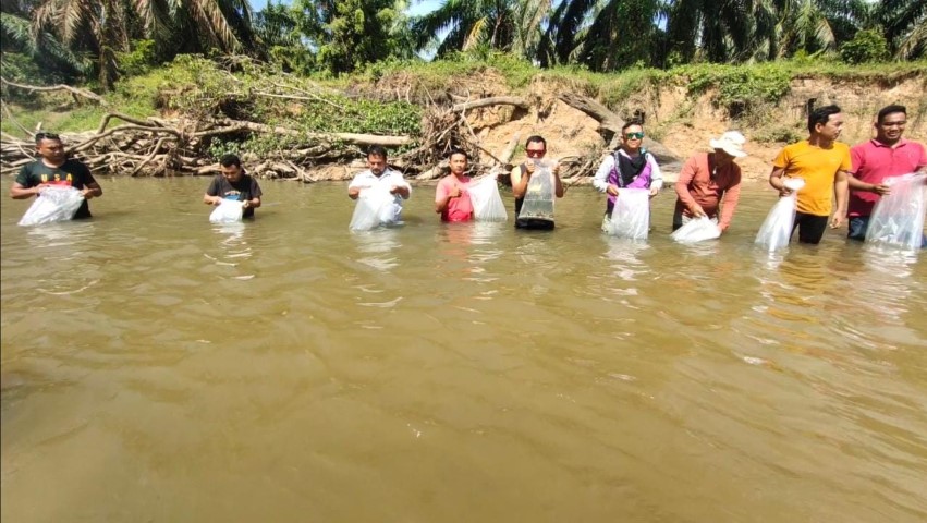 TAPUNG HULU - Sekitar 10 ribu bibit ikan ditabur di Sungai Tapung, Desa Kasikan, Kecamatan Tapung, Kabupaten Kampar menjelang masuknya bulan suci Ramadhan 1443 Hijriyah pada hari Sabtu (02/04/2022) kemarin.