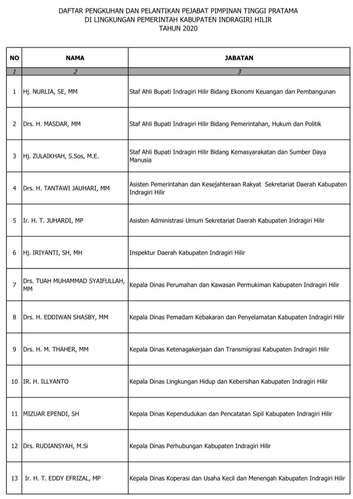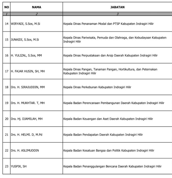 Berikut Nama-nama Pejabat Eselon II di Lingkungan Pemkab Inhil :