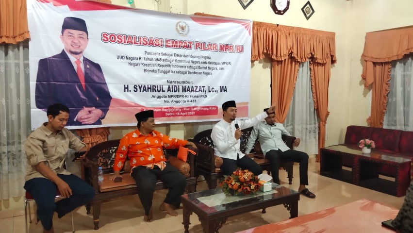 BANGKINANG KOTA - Anggota Dewan Perwakilan Rakyat (DPR) Republik Indonesia DR H Syahrul Aidi mengelar kegiatan Sosialisasi Empat Pilar di Hotel Madinah, Jalan Pramuka, Bangkinang Kota, Kelurahan Langgini, Kecamatan Bangkinang Kota, Kabupaten Kampar, Ahad (17/04/2022) sore hingga malam.