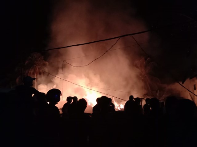 TEMPULING - Musibah kebakaran kembali terjadi Jalan Bandes, Parit 08 RT 10/ RW 04 Desa Teluk Jira, Kecamatan Tempuling, Kabupaten Indragiri Hilir (Inhil) Provinsi Riau, Minggu (09/02/2020) malam.