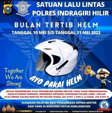 Kapolres Inhil, AKBP Dian Setyawan SH SIK MHum saat dikonfirmasi melalui Kasat Lantas AKP Eri Asman membenarkan adanya Bulan Tertib Helm yang akan dilaksakan di Inhil.