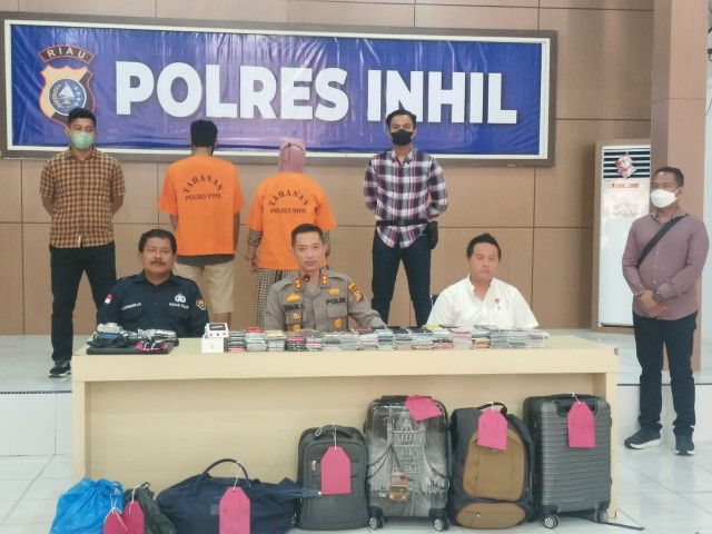 "Satreskrim Polres Inhil berhasil menangkap q1 Sepasang suami-istri itu, yang diketahui berinisial DK (48) dan S (44) membawa dengan barang bukti 2 buah tas koper, 2 buah tas ransel, 1 tas jinjing dan 2 bungkusan plastik berisikan 243 unit handphone berbagai merk yang didominasi iPhone, 5 unit kamera berbagai merk dan 1 unit laptop merk dell warna hitam," ucap AKBP Dian Setyawan.