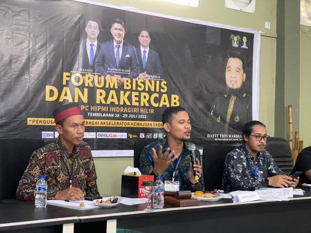TEMBILAHAN - Badan Pengurus Cabang (BPC) Himpunan Pengusaha Muda Indonesia (Hipmi) Kabupaten Indragiri Hilir (Inhil) menggelar Rapat Kerja Cabang (Rakercab) di Aula Hotel Top 5, Jalan Baharuddin Yusuf, Tembilahan, Kamis (28/07/2022).