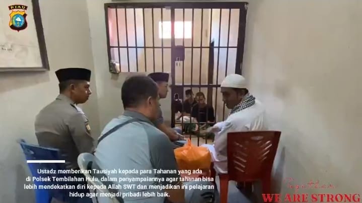 Kapolsek Tembilahan Hulu memberi pesan-pesan kepada para tahanan, agar sesama tahanan saling menguatkan.