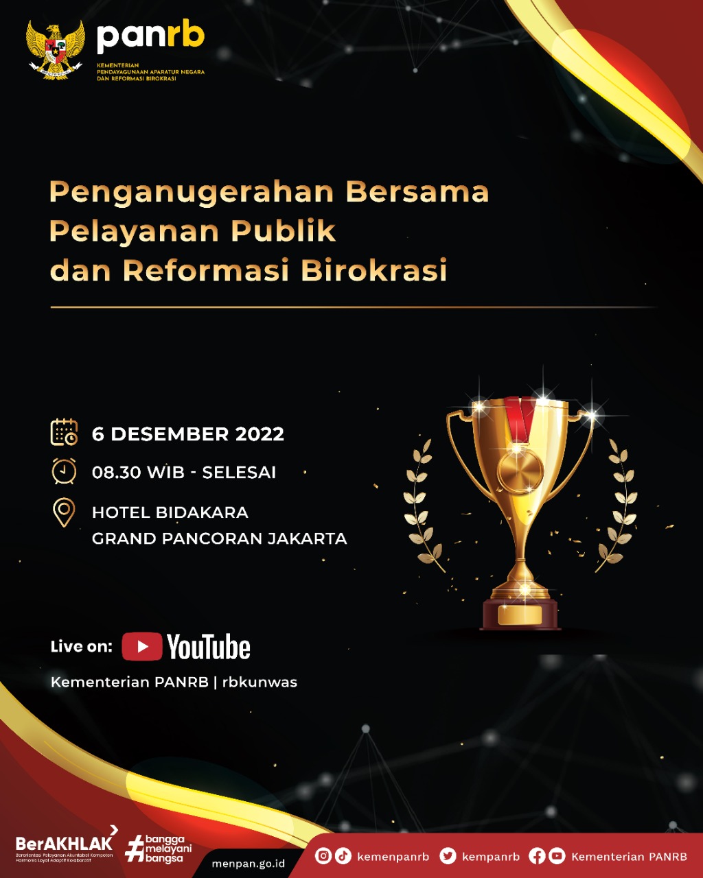 Penghargaan tersebut diserahkan oleh Kementerian PANRB dalam kegiatan penganugerahan bersama pelayanan publik dan reformasi birokrasi 2022, pada Selasa (6/13/22).