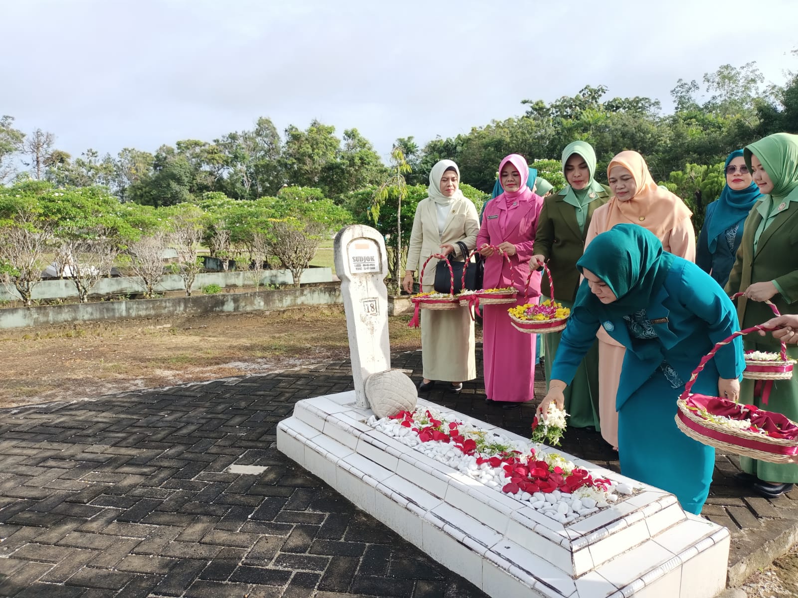 INDOVIZKA. COM- Momentum Peringatan Hari Ibu Tahun 2022, Penjabat Ketua Tim Penggerak PKK Kabupaten Kampar Ny Hj Deswita Kamsol menggelar kegiatan ziarah ke Makam Pahlawan Eka Kusuma Bakti Bangkinang, di Jalan Tuanku Tambusai, Kelurahan Langgini, Kecamatan Bangkinang Kota, Kabupaten Kampar.