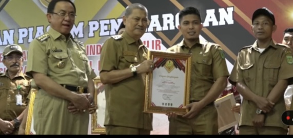 Penghargaan tersebut diberikan langsung oleh Wakil Bupati Kabupaten Inhil H. Syamsuddin Uti bersama Bupati Inhil HM Wardan, yang diterima langsung oleh Kepala Desa Danau Pulai Indah Andi Asnizar, S.IP.