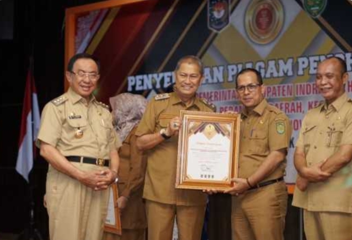 Penghargaan tersebut diserahkan langsung oleh Bupati Inhil Drs HM Wardan MP didampingi Wakil Bupati H Syamsuddin Uti kepada Kepala Dinas Kominfopers Kab.Inhil Trio Beni Putra SE MM dalam acara Penyerahan Piagam Penghargaan IGA 2022 di Gedung Engku Kelana Tembilahan, Selasa (27/12/2022).