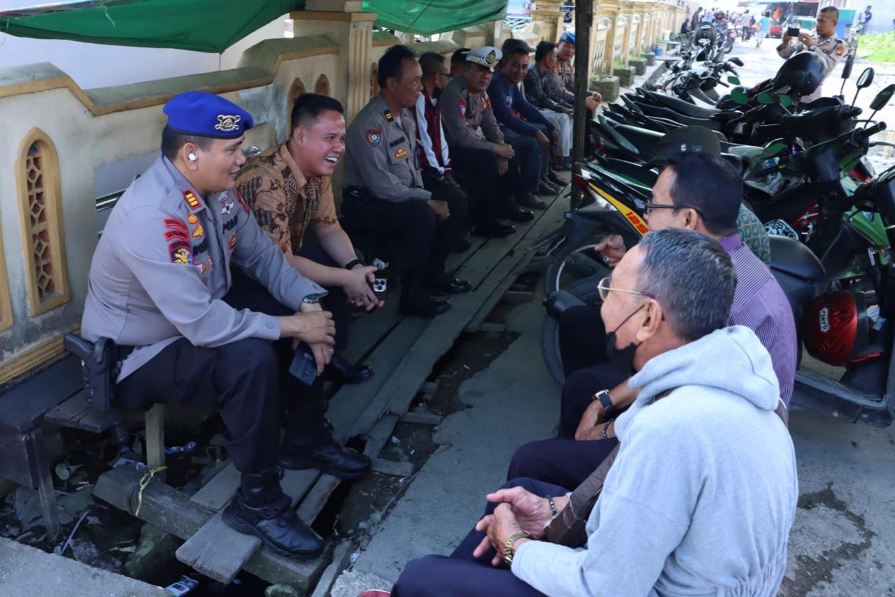 Tampak Pju Polres Inhil yang hadir duduk dan mengobrol bersama masyarakat serta tukang ojek untuk sharing dan mendengarkan keluharan serta curhatan secara langsung.