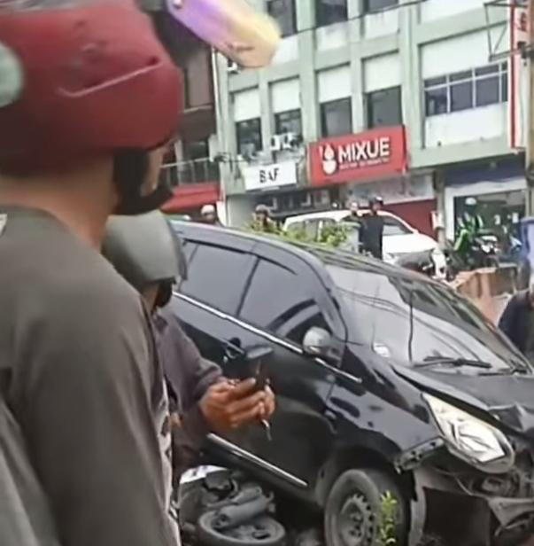 Sementara mobil hitam yang menabrak korban terhenti setelah menabrak tiang PLN.