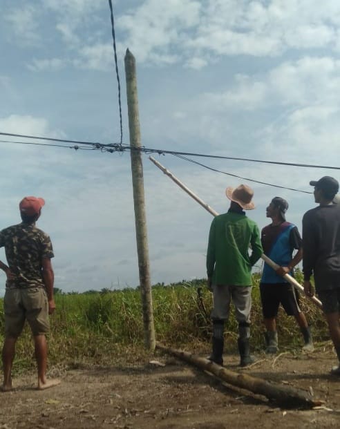 "Alhamdulillah, kegiatan gotong royong hari ini berjalan lancar berkat bantuan dari perangkat Desa, Dusun, RT parit 12,13,14,15 untuk bersama-sama gotong royong memperbaiki dan memasang tiang penyanggah kabel listrik," kata N. Siagian
