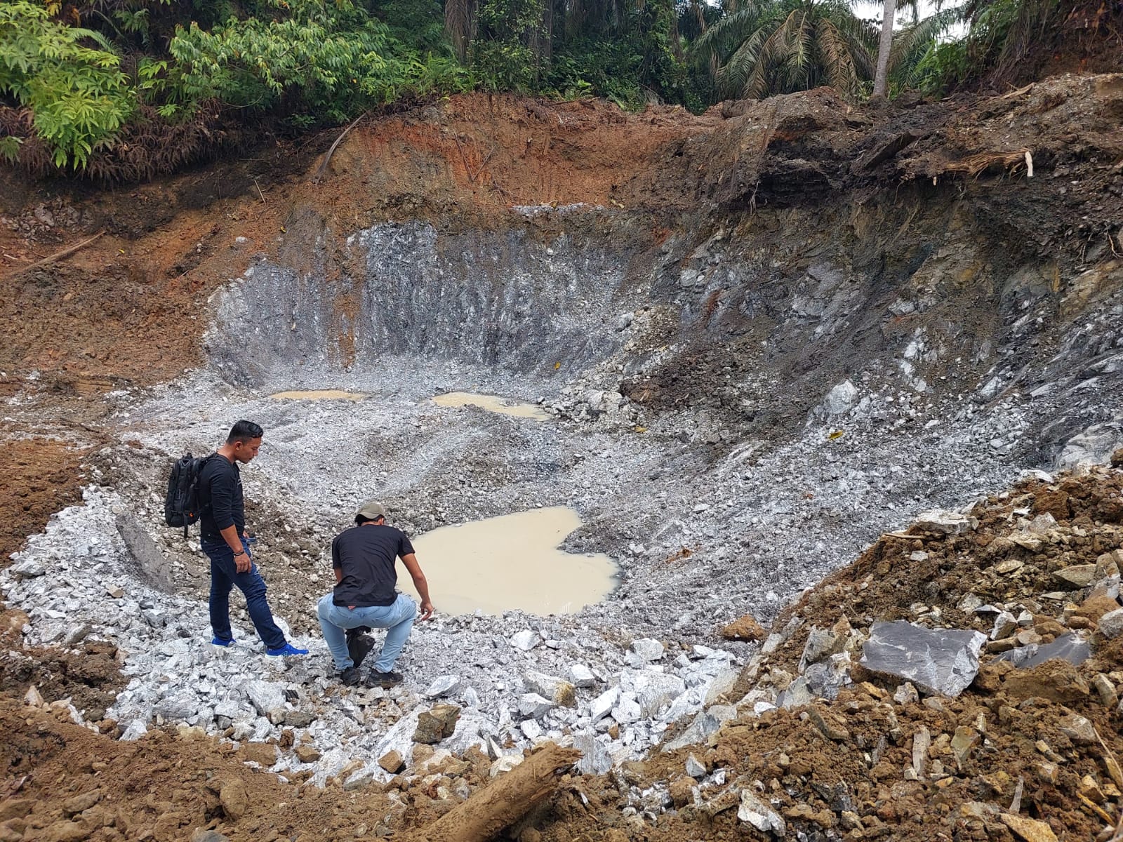 "Di lokasi kami temukan adanya aktivitas pertambangan dengan menggunakan 1 unit eksavator serta beberapa unit mobil dump truck yang sedang antri menunggu hasil galian tambang untuk di muat," jelasnya.