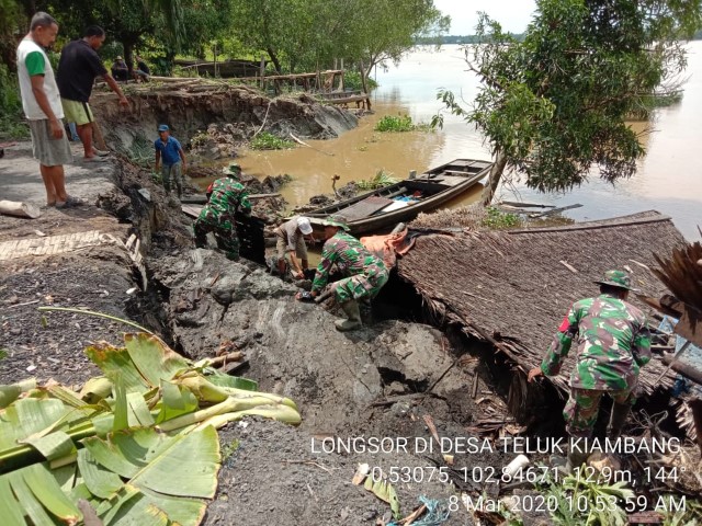 INDOVIZKA.COM - Sebanyak 3 unit dapur pencetakan anglo milik warga luluh lantak dikarenakan tanah longsor akibat tergerus air sungai di RT.06/RW.01 Dusun Pantai Harapan, Desa Teluk Kiambang, Kecamatan Tempuling, Kabupaten Inhil, Minggu (08/03/2020) sekitar jam 01:00 WIB dini hari.