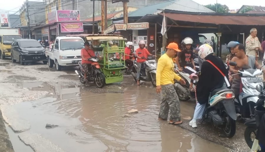 Menurutnya, setiap pengendara melewati jalan ini, harus berhati-hati. Tidak jarang kendaraan roda dua terpeleset bahkan jatuh. Bahkan untuk kendaraan roda empat saja sudah sering terpuruk karena dalamnya lubang.