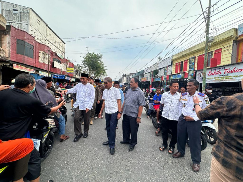 INDOVIZKA. COM- Penjabat Bupati Kampar Dr H Kamsol melakukan sidak dan turun langsung menyapa para pedagang takjil dan warga Bangkinang Kota yang berbelanja di setiap sudut Ibukota Kabupaten Kampar, Kamis (23/03/2023) sore.