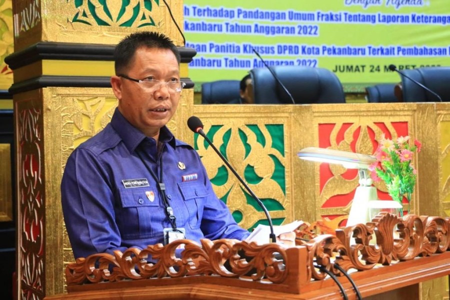 Hal ini disampaikan Pj Wali Kota Pekanbaru Muflihun, S.STP., M.AP diwakili Sekretaris Daerah Kota Pekanbaru Indra Pomi Nasution, S.T., M.Si dalam Rapat Paripurna DPRD Kota Pekanbaru, Jumat (24/3).