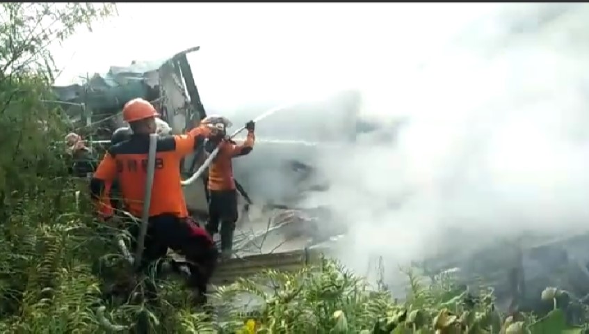 Petugas Damkar berjibaku memadamkan api agar kebakaran tak meluas dan merembet kerumah warga lainnya. Api dapat dikendalikan sekitar 1 jam dari kejadian.