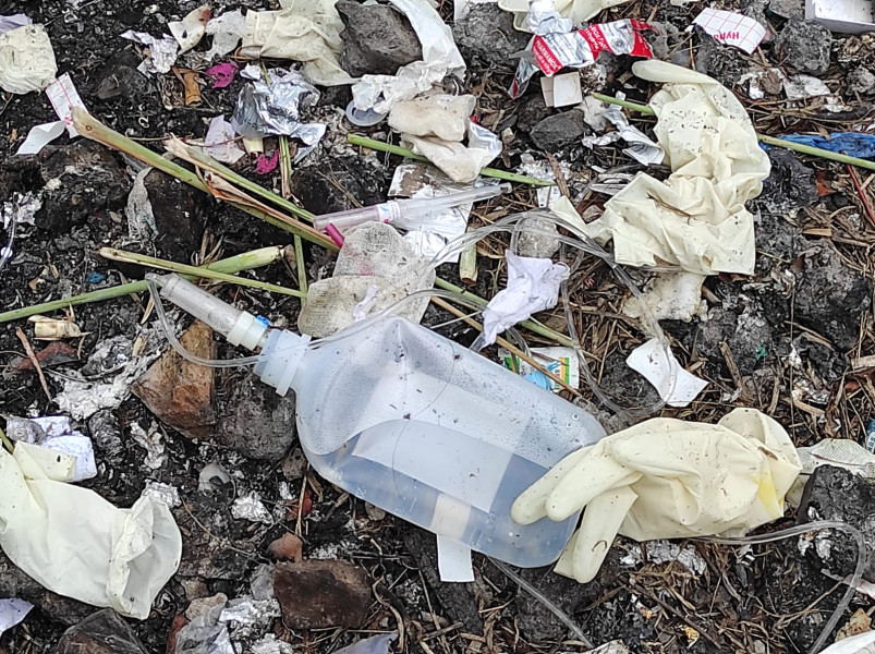 Limbah medis yang terlihat berserakan itu dapat dipantau dan dijangkau hingga mengundang perhatian warga setempat.