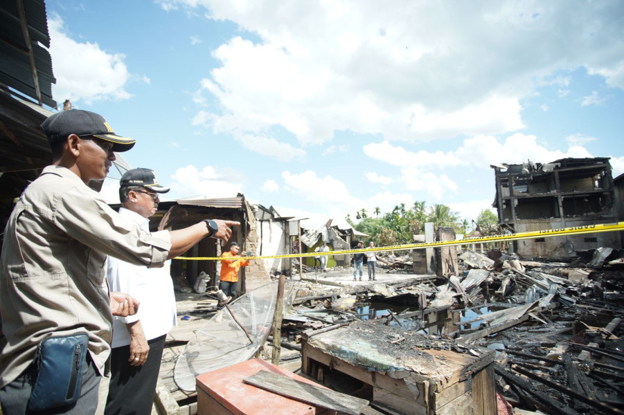 Duka yang mendalam disampaikan Bupati Inhil HM Wardan saat meninjau secara langsung di lokasi kejadian kebakaran.