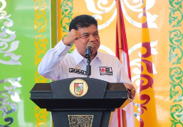 Pj Walikota Pekanbaru Muflihun turut hadir dalam pelantikan tersebut dan ikut menyematkan pin pengurus PMI Pekanbaru kepada Abdul Jamal.