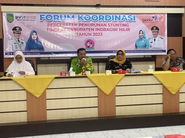 INDOVIZKA.COM - Pemerintah Kabupaten Indragiri Hilir (Inhil) menggelar Forum Koordinasi Percepatan Penurunan Stunting Tingkat Kabupaten Tahun 2023 di Aula Kantor Bapedda Inhil, Kamis (11/05/23).