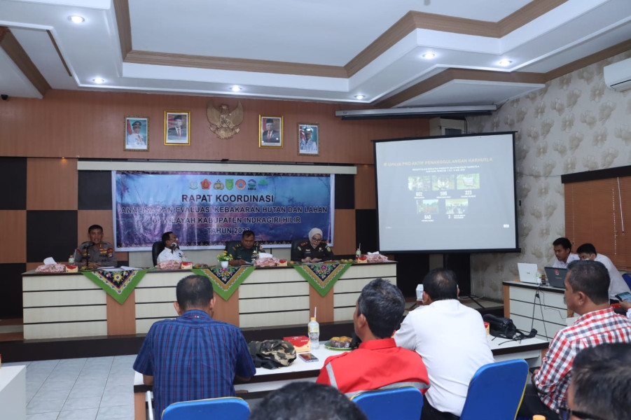 Rakor Anev Penanggulangan Karhutla tersebut dipimpin Bupati Inhil HM Wardan bersama Kapolres AKBP Norhayat dan Dandim 0314/Inhil diwakili oleh Pasi Pers Letda Arm Muchazzar serta Kajari Inhil Nova Fuspitasari SH MH.
