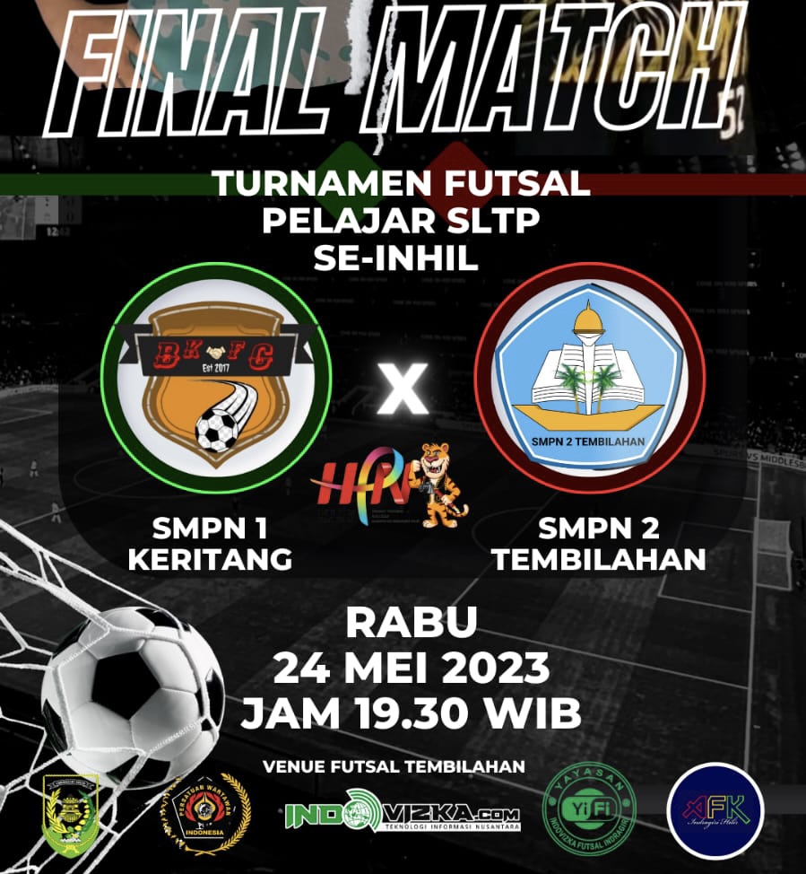 Pertandingan final dilanjutkan nanti malam mencari juara 3 dan 4 dari tim MTsN 2 Inhil dan SMPN 3 Kempas pada jam 19:30 WIB, dan dilanjutkan dengan pencarian juara 1 dan 2 antara Tim SMPN 2 Tembilahan melawan SMPN 1 Keritang 20:30 WIB