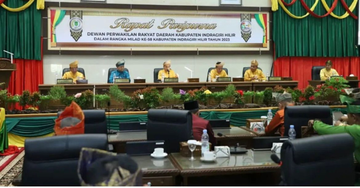 INDOVIZKA.COM - Rapat Paripurna Dewan Perwakilan Rakyat Daerah Kabupaten Indragiri Hilir (DPRD Inhil) dalam rangka Milad Ke-58 Kabupaten Indragiri Hilir, berlangsung di Aula Ruang DPRD Inhil, Jalan Soebrantas Tembilahan, Rabu (14/06/2023)