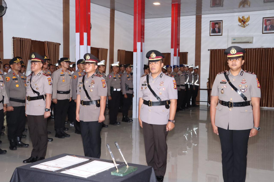 Serah terima dari pejabat lama Kasat Reskrim dari AKP Amru Abdullah SIK MSi kepada AKP Anggi Rian Diansyah STK SIK dan serah terima jabatan Kasat Lantas dari AKP Eri Asman SH kepada AKP Tatit Rizkyan Hanafi STK SIK.