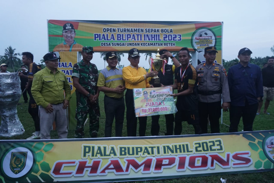 INDOVIZKA.COM - Setelah memakan kurun waktu 40 hari, Turnamen Sepakbola Piala Bupati Desa Sungai Undan Kecamatan Reteh secara resmi ditutup langsung oleh Bupati Inhil HM WARDAN, Kamis (20/07/23).