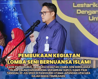 INDOVIZKA.COM - Pemerintah Kabupaten (Pemkab) Indragiri Hilir (Inhil) melalui Dinas Pariwisata, Pemuda dan Olahraga, dan Kebudayaan (Disparporabud) Kabupaten Indragiri Hilir (Inhil) membuka kegiatan lomba Seni Bernuansa Islami di Panggung utama lapangan Gajah Mada Tembilahan, Kamis (20/7/23).