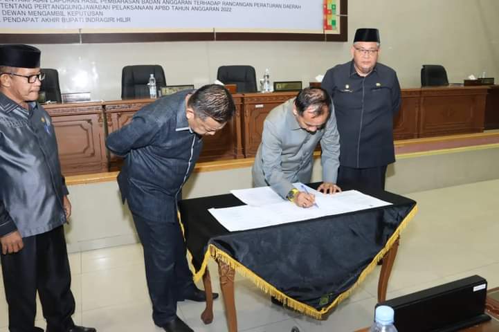 INDOVIZKA.COM - Pemerintah Kabupaten (Pemkab) Indragiri Hilir (Inhil) bersama Dewan Perwakilan Rakyat Daerah (DPRD) Kabupaten Inhil menyetujui Rancangan Peraturan Daerah (Ranperda) tentang Laporan pertanggung jawaban pelaksanaan Anggaran Pendapatan Belanja Daerah (APBD) Tahun Anggaran 2022.