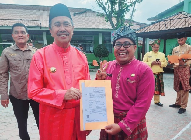 INDOVIZKA.COM - Ratusan ASN PPPK guru tahun 2022 di Kota Pekanbaru terima SK pengangkatan, Selasa (1/8/2023). Surat Keputusan (SK) Pengangkatan PPPK Guru langsung diserahkan Gubernur Riau (Gubri), Syamsuar di SMAN 2 Pekanbaru.