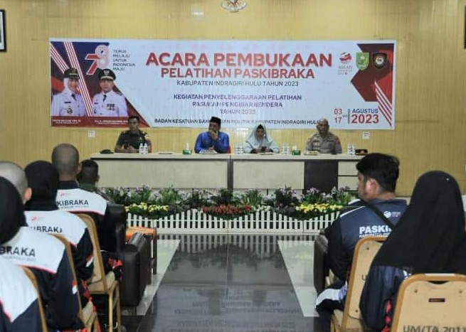 INDOVIZKA.COM - Pemerintah Kabupaten (Pemkab) Indragiri membuka acara pelatihan Paskibraka tahun 2023, Kamis (3/8/2023). Acara berlangsung di Gedung Sejuta Sungkai Jalan A Yani Rengat.