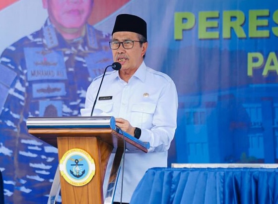 INDOVIZKA.COM - Gubernur Riau (Gubri) Syamsuar menghadiri peresmian Gedung Mako Pangkalan TNI AL Dumai, di Kota Dumai, Jumat (4/8/2023).