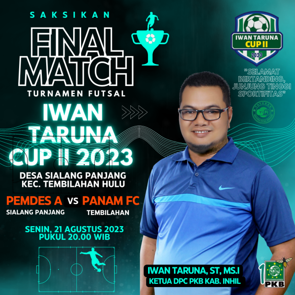 "Alhamdulillah sejak dibukanya IWAN TARUNA CUP II pada 9 Agustus 2023 lalu, kami selaku panitia pelaksana mengucapkan terimakasih kepada seluruh tim yang sudah berjuang dengan sportifitas tinggi, insyaallah malam ini 21 Agustus 2023 kita akan menyaksikan laga final antara Pemdes A vs vs Panam FC," kata Syahril.