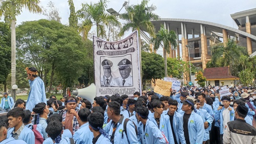 PEKANBARU, INDOVIZKA.COM- Mahasiswa Universitas Riau (Unri) menggelar aksi unjuk rasa di Halaman Kantor Gubernur Riau, Kamis (7/9/2023) sore, meminta Gubernur dan Wakil Gubernur Riau Syamsuar - Edi Natar Nasution menyampaikan kinerja 5 tahun kepemimpinan mereka.