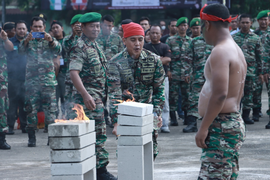 Kemampuan seorang prajurit ditampilkan oleh Dandim 0314/Inhil dengan atraksi ketangkasannya memakan bara api dengan lahap serta kebal terhadap sayatan senjata tajam.