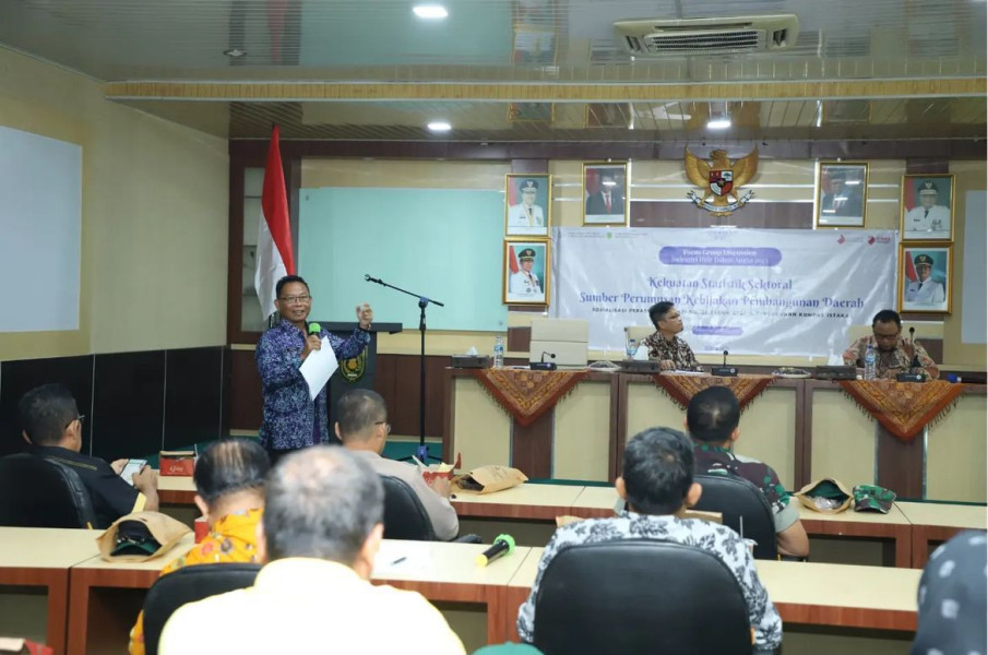 Kepala BPS Inhil, Sudiro mengungkapkan tujuan dilangsungkannya FGD ini untuk memperkuat pemanfaatan statistik sektoral untuk perumusan kebijakan yang berkualitas.