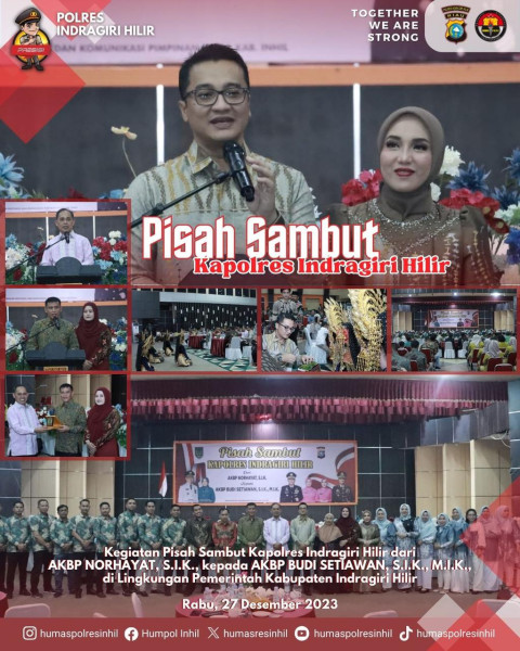 INDOVIZKA.COM - Forum komunikasi pimpinan daerah (Forkopimda) Kabupaten Indragiri Hilir (Inhil) melaksanakan pisah sambut Kapolres, Rabu (27/12/2023) di Gedung Engku Kelana, Jalan Baharuddin Yusuf Tembilahan.
