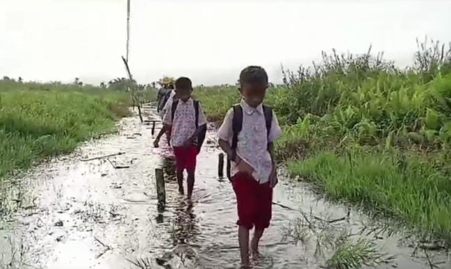 Berdasarkan pantauan, Pelajar-pelajar tersebut harus membuka sepatu dan berjalan dengan hati-hati. Pasalnya sepanjang jalan akses utama masyarakat ini sudah tergenang air.