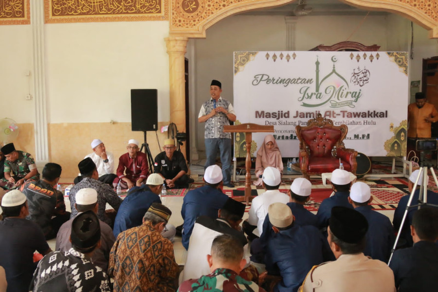 Turut hadir bersama rombongan Pj.Bupati Dandim 0314, Kalaksa BPBD, Kadis Perkim, Kadis Pangan, Tanaman Pangan dan Holtikultura, Kadis Damkar, Plt.Camat Hulu dan dan Para Tokoh agama setempat.Peringatan Isra Miraj ini menggandeng Pendakwah dari Sungai Salak yakni Ust.Mi’raj, S.Pd.M.Pd.