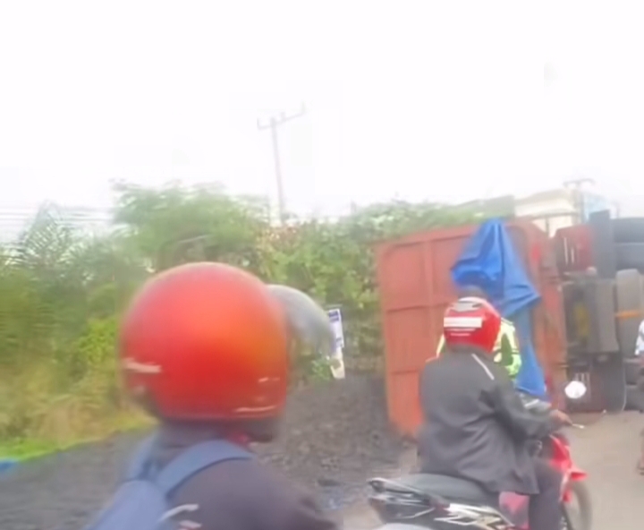 Hindari Pejalan Kaki, Truk Bermuatan 20 Ton Batu Bara Terguling di SM Amin